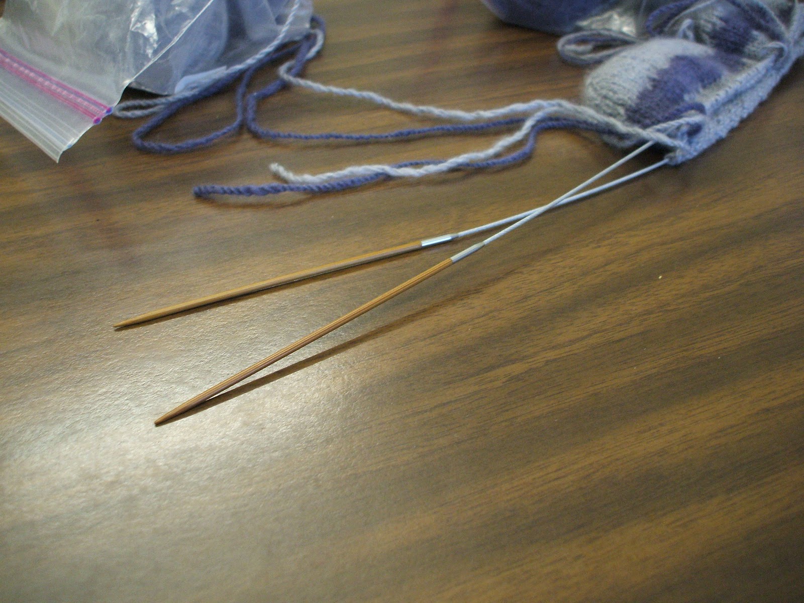 I was working on some cashmere socks for my sweet mama and my Addi Turbo were just too slick for the yummy cashmere yarn. So I trotted on over to The Yarn Mart and bought a pair of ChiaoGoo Bamboo Circulars (size 1). THEY ARE FABULOUS!!!!!! The needle points are sharp – perfect for this thick and thin yarn I’m using. The joins are beautiful. But its the cable that I’m loving the most. It’s metal – like a super thin version of a guide wire on a electric pole. It is more flexible than the plastic that I love on my Addi.