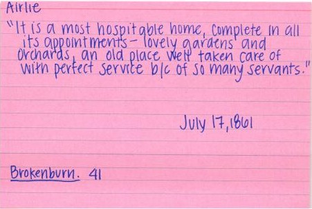 segment from thesis about Airlie including quotes from McNeilly sketch, part of the Breckinridge Family Papers at the Library of Congress