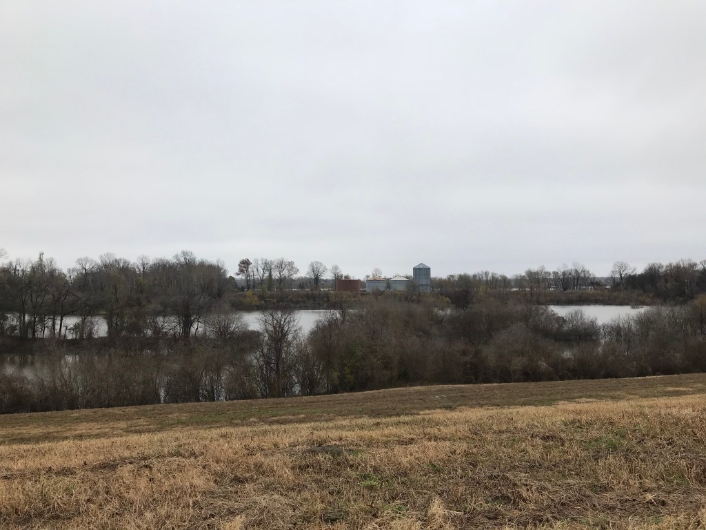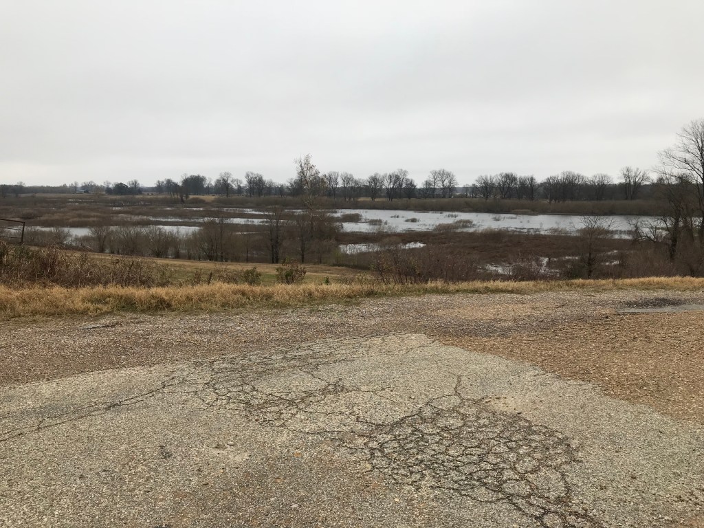 So when my husband suggested we head south to Vicksburg, I knew we’d be looking for Airlie. Well at least I would be. And just past Transylvania but not quite to Alastia on Highway 65 in northeastern Louisiana is Parish Road 2208 (although the road sign says Bunge). Turn east toward the levee and the River. Past two farms – one on each side. Up the levee.