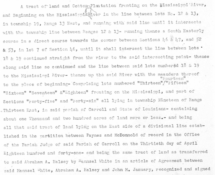 But I wanted to find where it was. In the plantation records collected by Dr. Reinders was a typed copy of the deed of sale. And in that typed deed, I found the township and range coordinates for Airlie.
