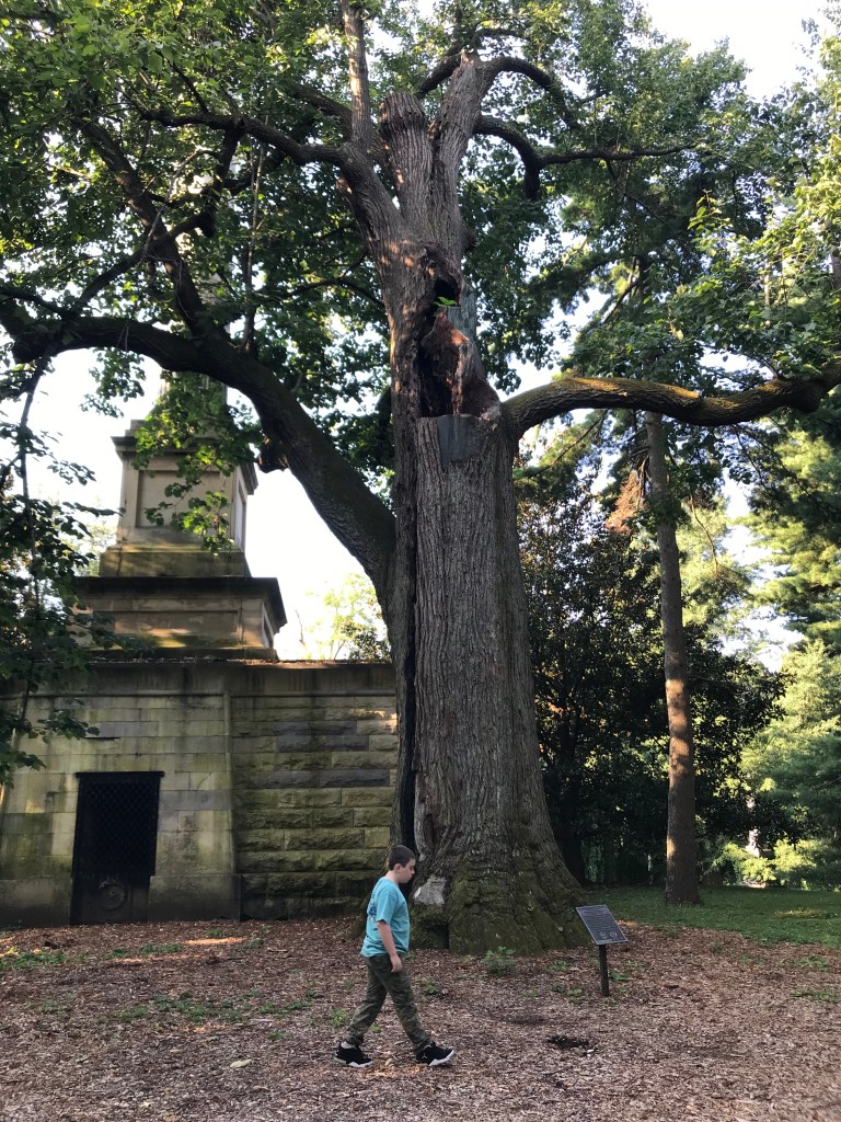 In many ways, this felt like a pilgrimage. I’ve spent years studying this woman, learning every detail of her life. I’ve located and visited the place where she grew up. I’ve found houses she lived in on Google Maps. But to visit her grave was different. The morning was beautiful. The sky was that Robin’s egg blue we get in the summer. Because we started at 8 a.m., the heat and humidity hadn’t reached its peak. And we were the only people there that early. We stopped at the office and picked up a map. We visited Henry Clay’s mausoleum and strolled along between the headstones. There were spider webs that would rival Charlotte’s creations. The trees were ancient giants providing shade and protection to the 1000s buried there.